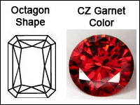 Cubic Zirconia Garnet Octagon or Baguette Shape