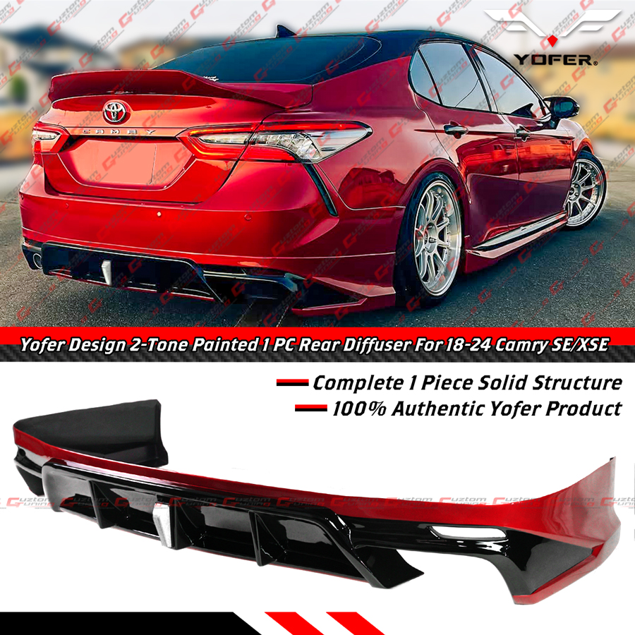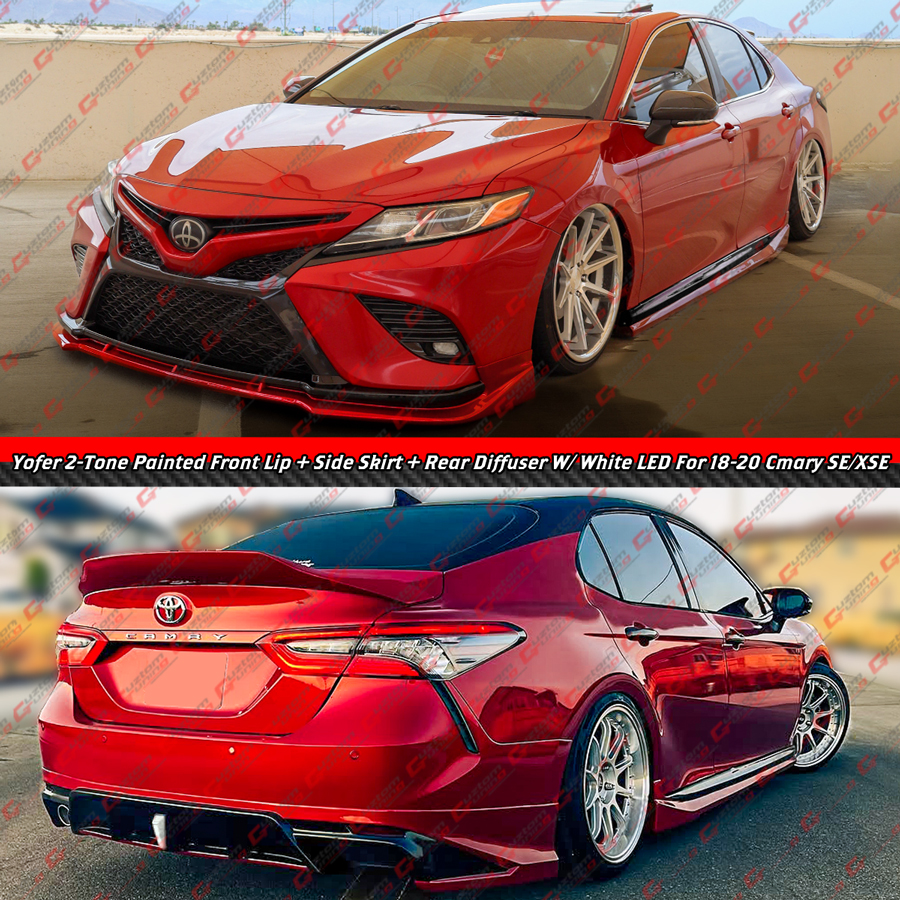 - Authentic Yofer Design V1 1pc Full Size Front Bumper Lip + Rear Bumper Diffuser With Unique Frosted White LED Light For Camry SE/XSE Models.