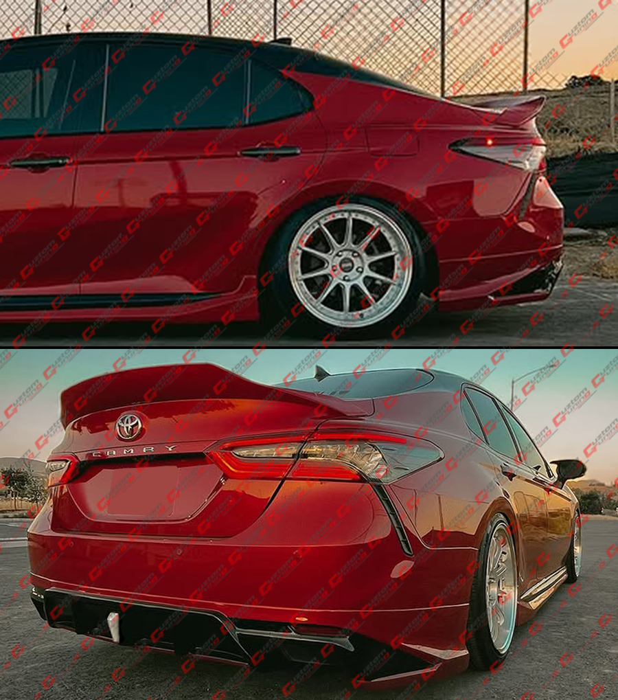 For 18-20 Camry Yofer Supersonic Red Front Lip + Side Skirt + Diffuser White LED