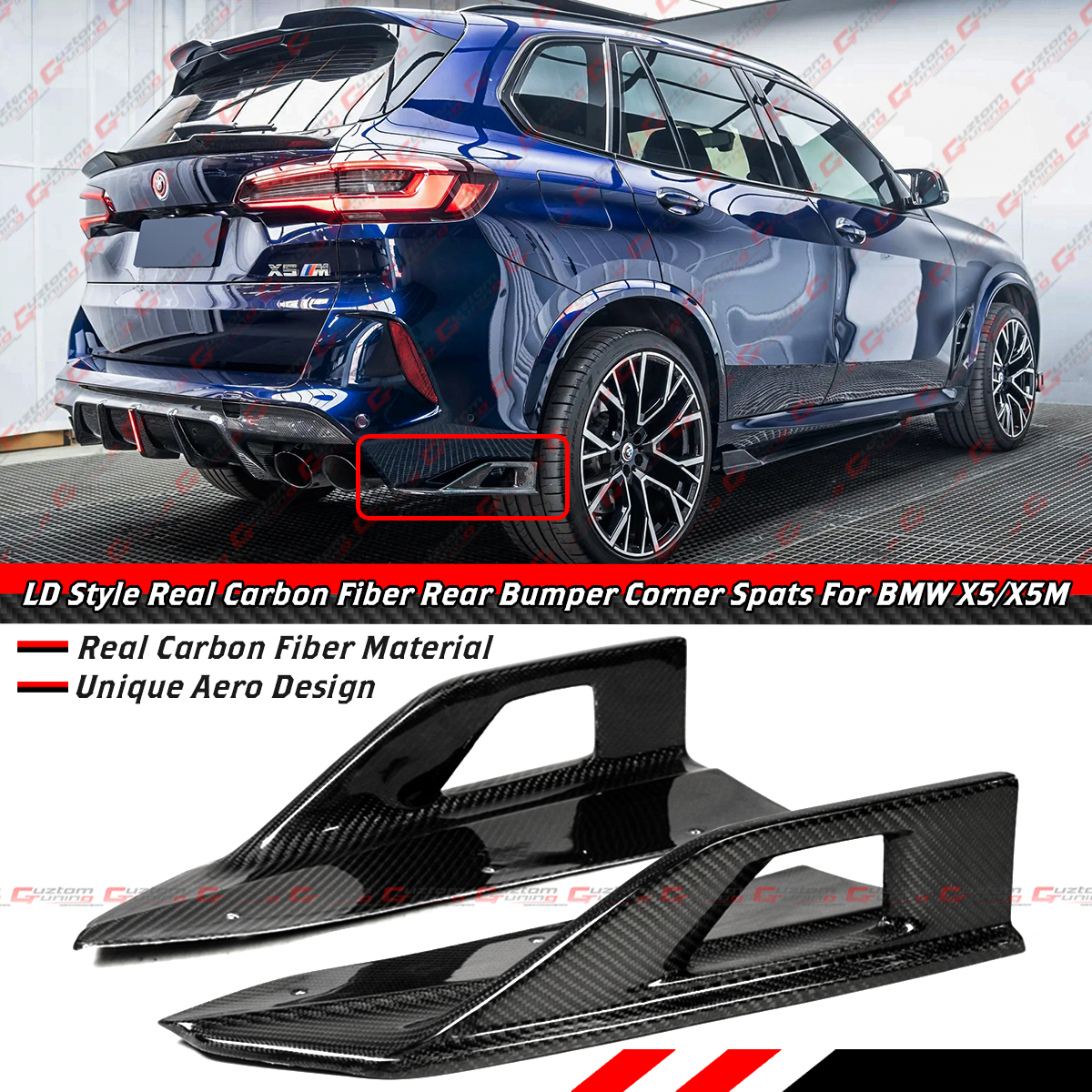 - LD Style See-Through Winglet Design Rear Bumper Corner Spat Extension For BMW F95 X5M. This Extension Will Provide You The Just-There Aggressive Look You Need And Flow Even Better With Your OEM Bumper.