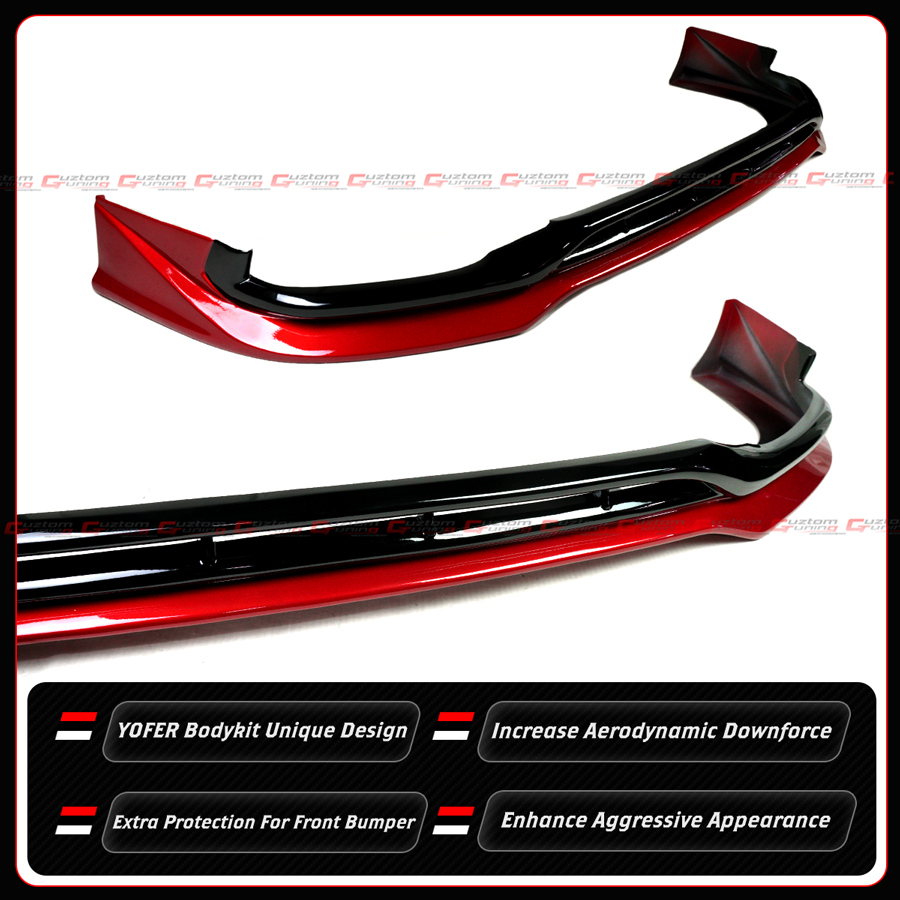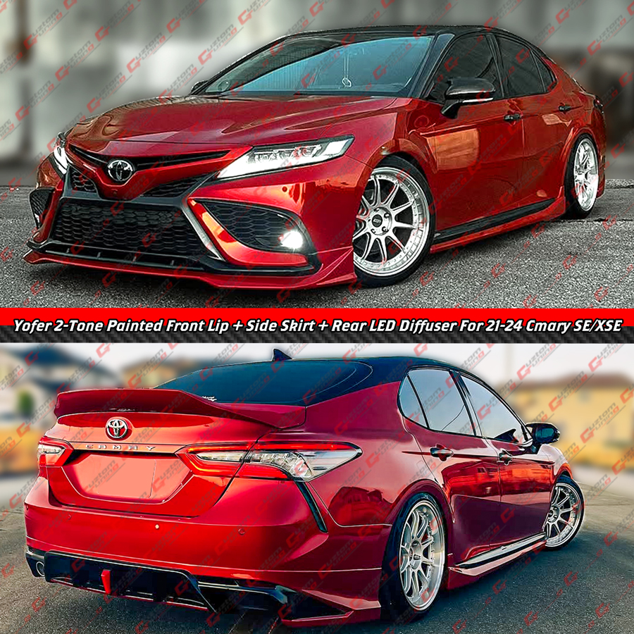 - Authentic Yofer Design V1 1pc Full Size Front Bumper Lip + Side Skirt + Rear Bumper Diffuser With Red LED Light For Camry SE/XSE Models.