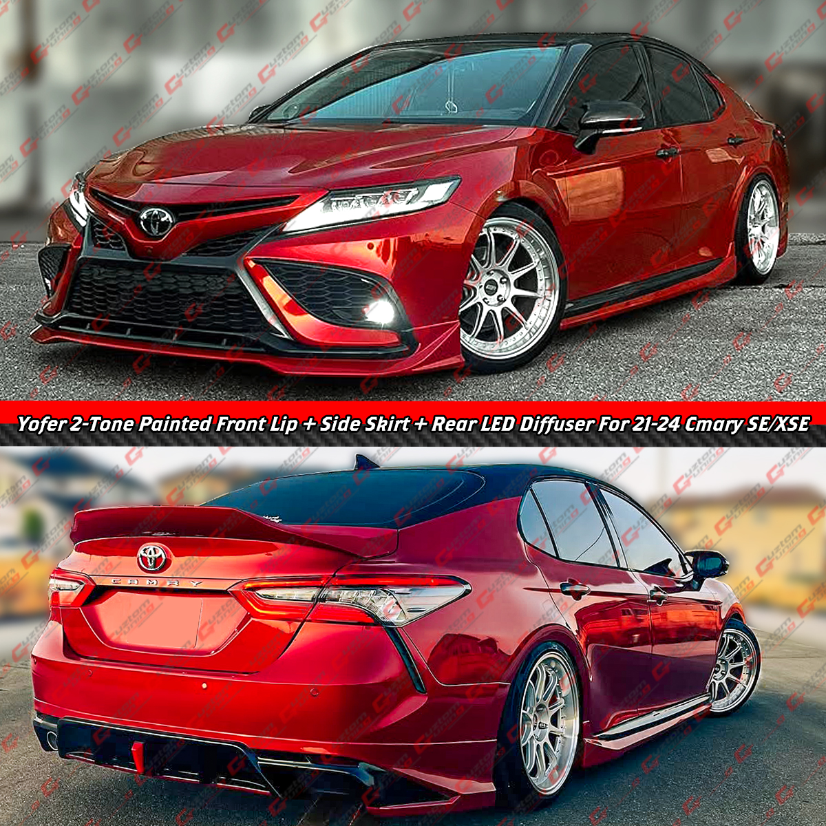 For 2021-2024 Camry Yofer Supersonic Red Front Lip + Side Skirt + Rear Diffuser