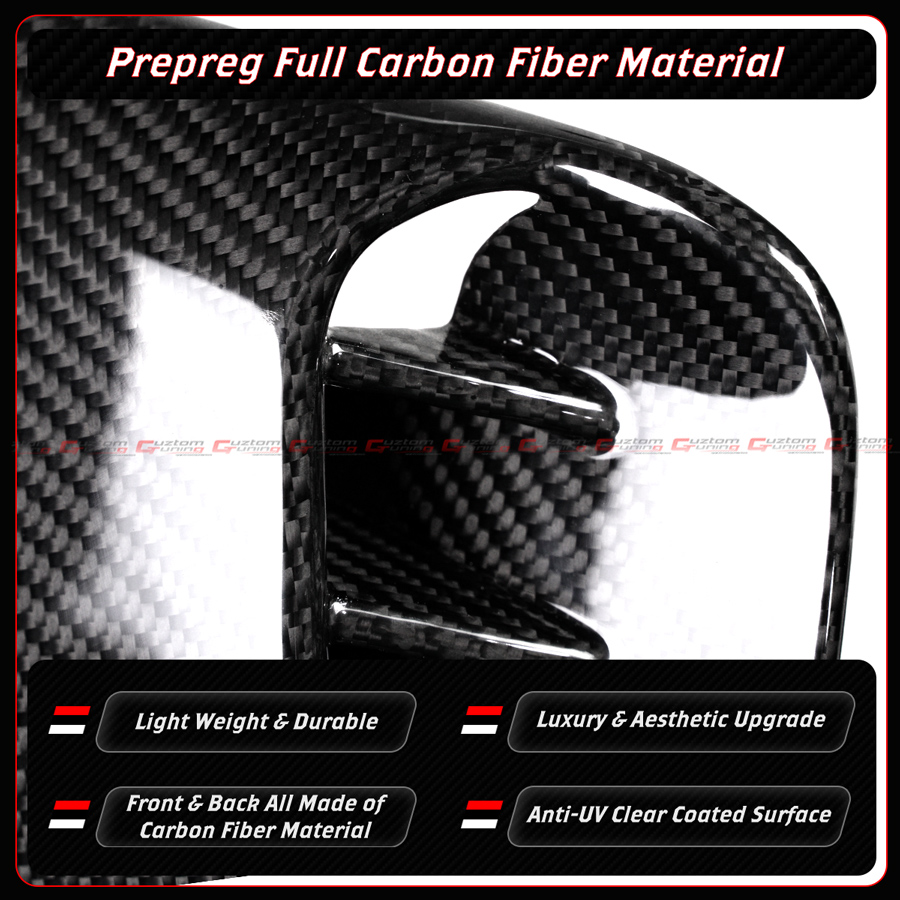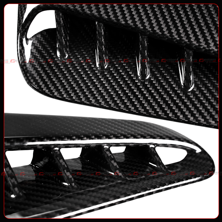 - 100% Real Full 3K Dry Carbon Fiber Structure. The Whole Garnish Trim is Made Out of Dry Carbon Fiber. This Is The Real Deal, Not The One In Hydrodip Or Carbon Print. These are Super Lightweight.
