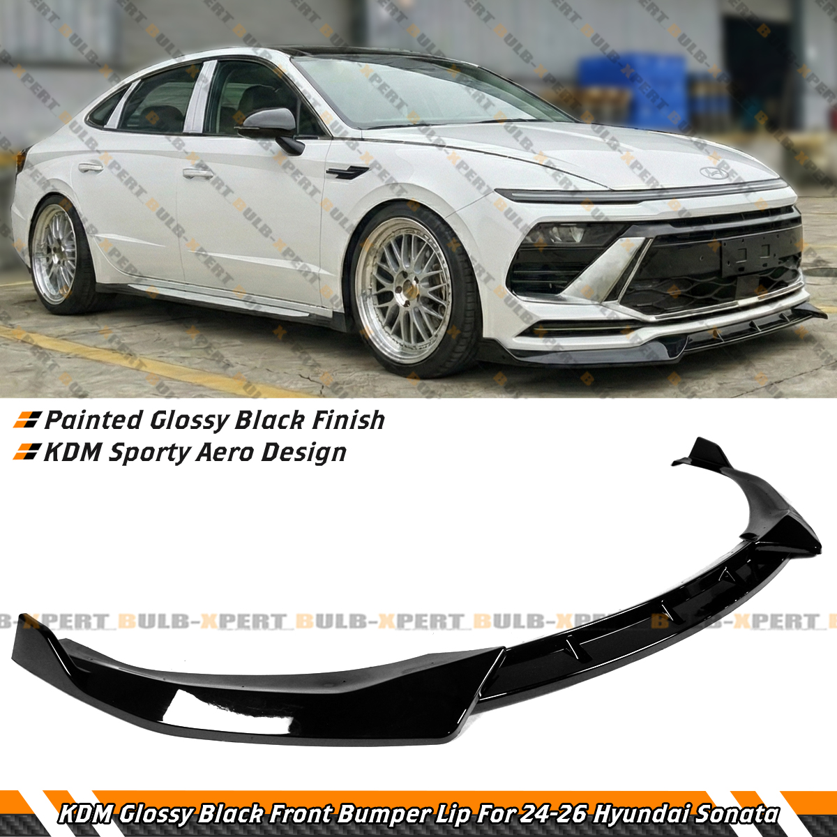 For 2024-26 Hyundai Sonata KDM Gloss Black 3pc Front Bumper Lip Splitter Spoiler