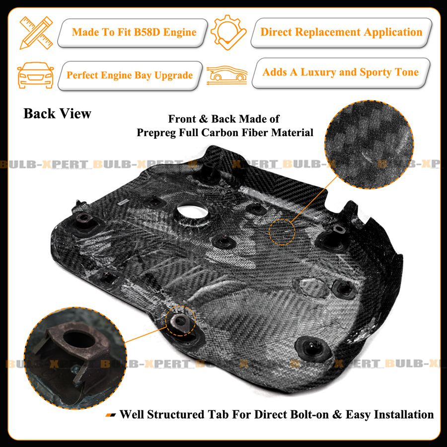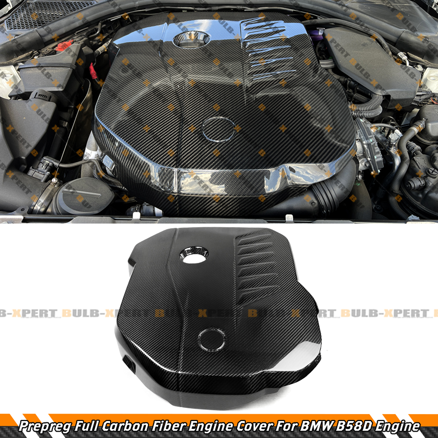 - Real Prepreg Dry Carbon Fiber Replacement Engine Cover For BMW B58d Engine.