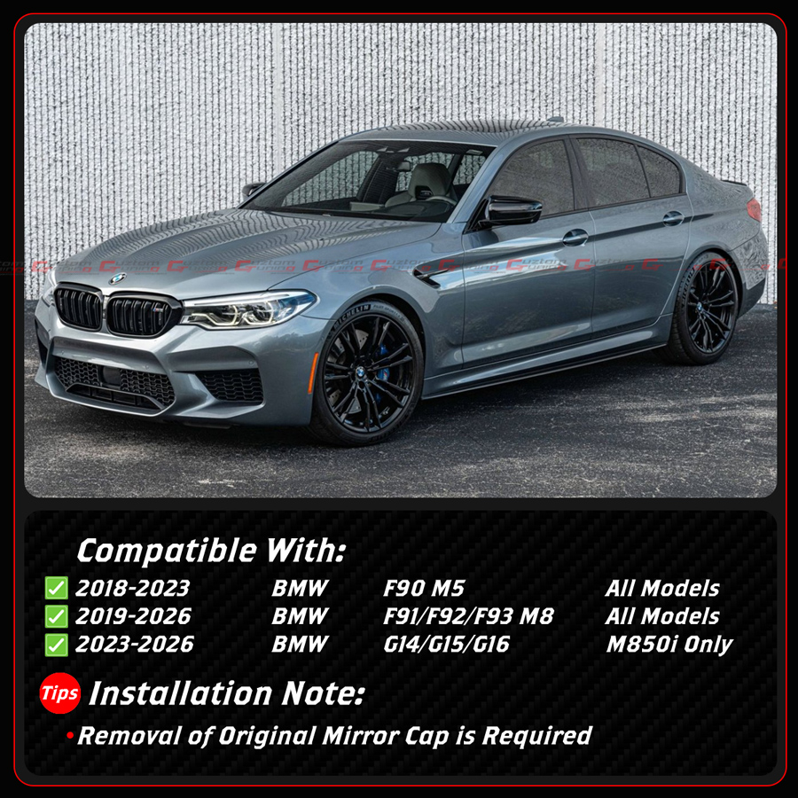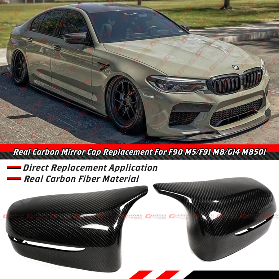 - Real Carbon Fiber Material Direct Replacement Mirror Covers Caps for F90 M5/ F91 F92 F93 M8 / G14 G15 G16 M850i.