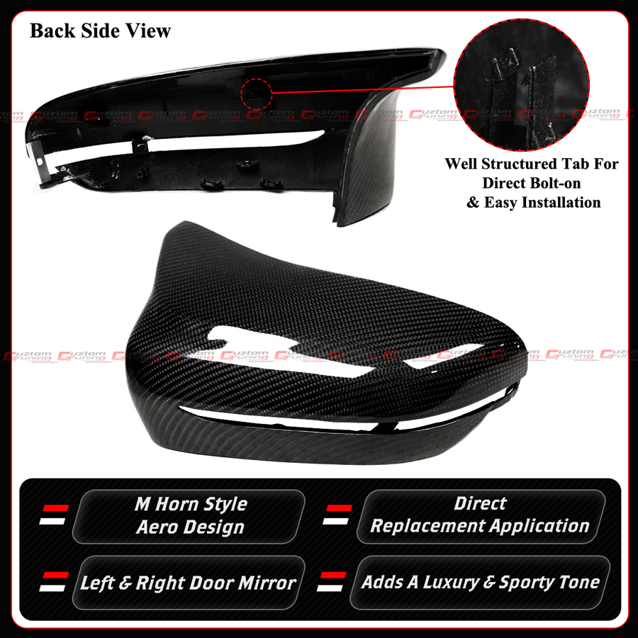 - Direct Replacement For Original Mirror Cap Cover. Gives Your Car's Exterior The Luxury Carbon Accent Tone.