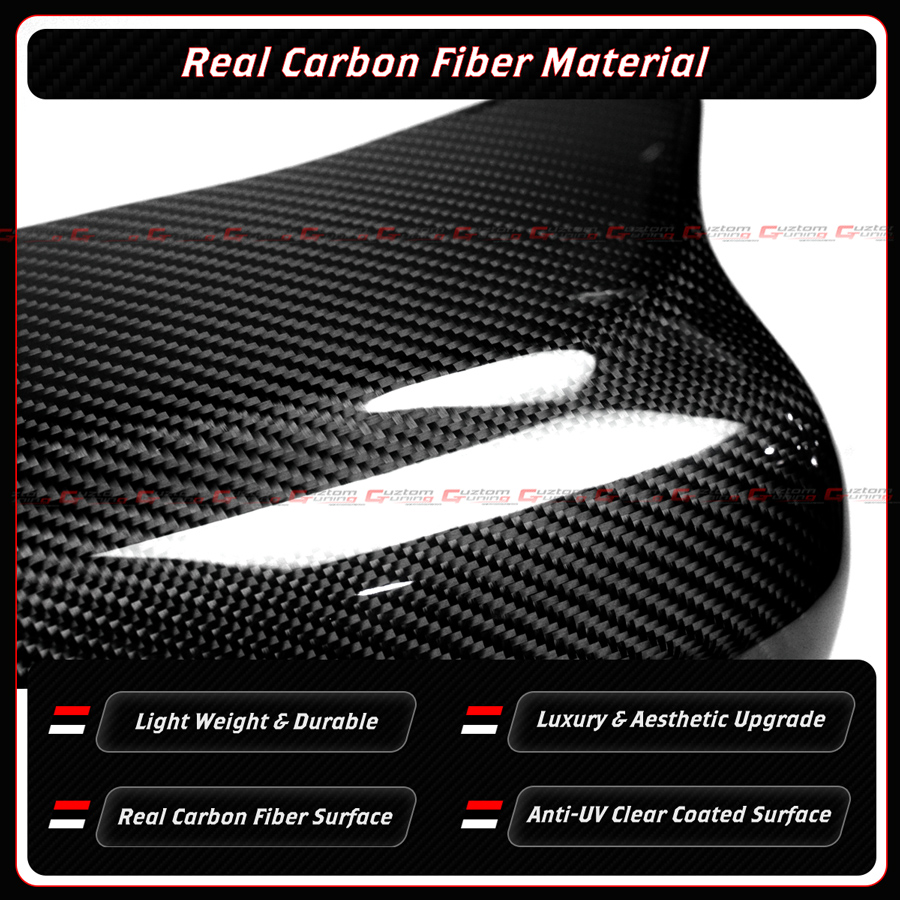 - Real 3K Vacuumed & Glossy Hand-Laid Carbon Fiber With ABS Base On The Back.