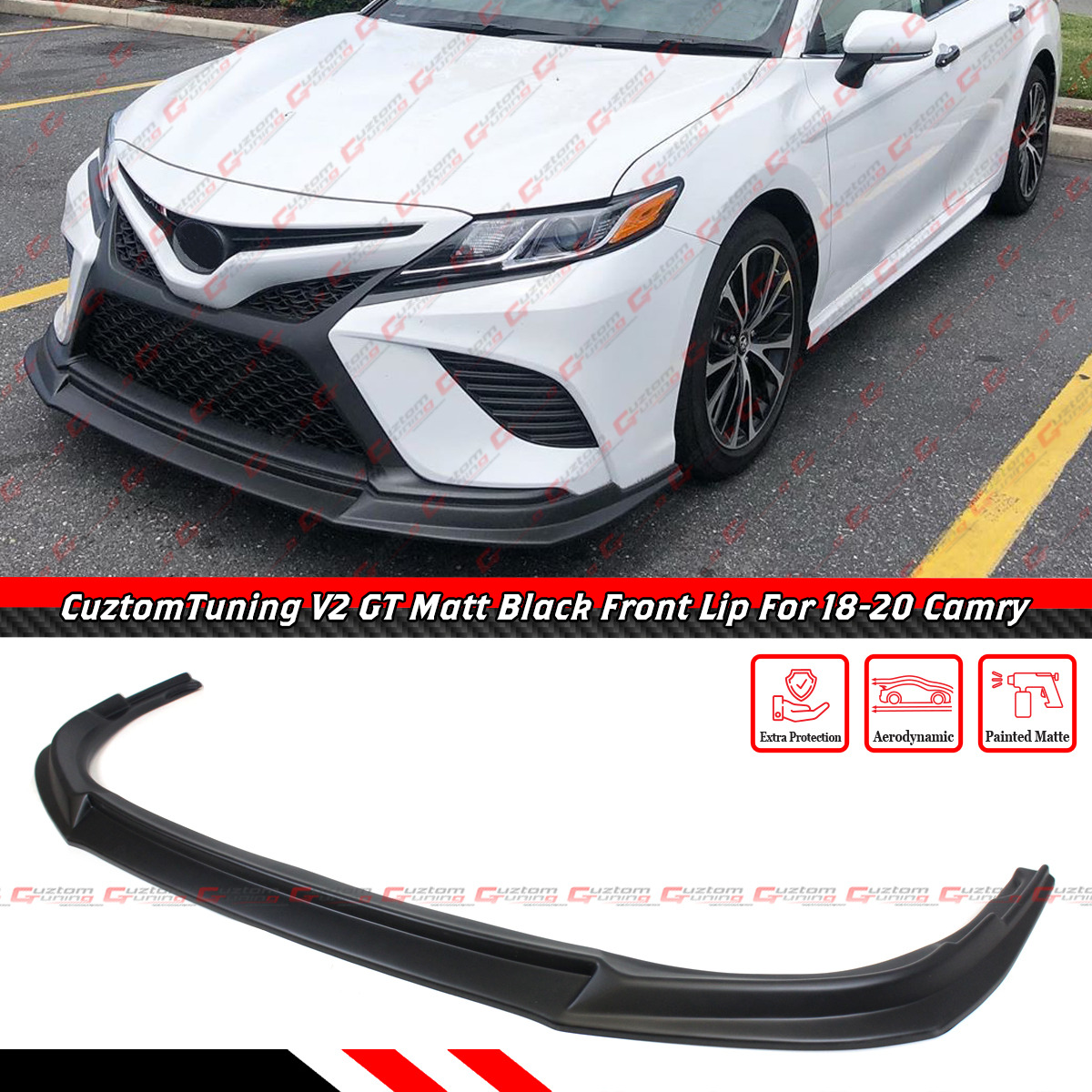 For 18-20 Toyota Camry SE XSE CTM V2 Design Matt Black Front Bumper Lip Splitter