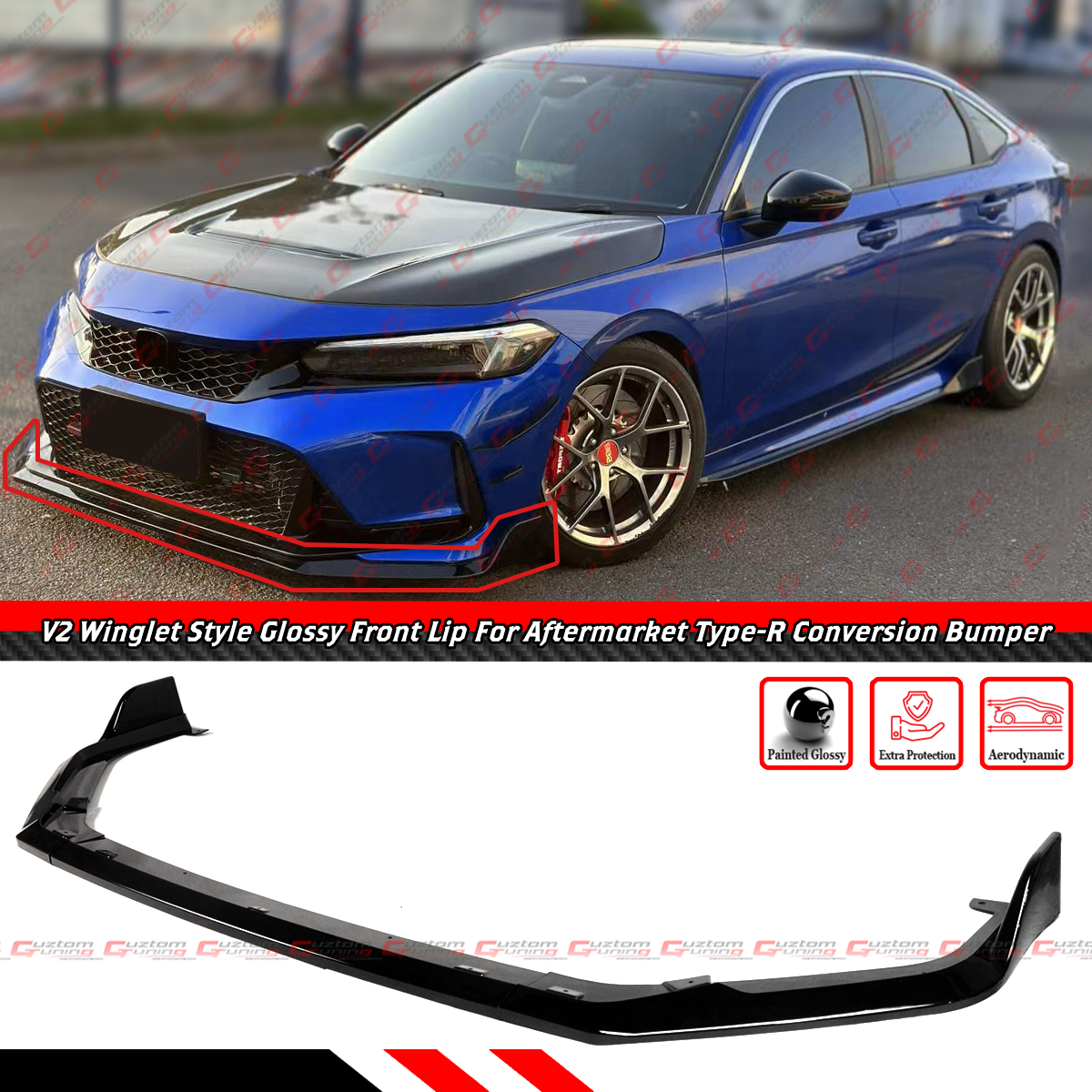 - V2 Winglet Style Front Lip Splitter For Aftermarket Type-R Conversion Bumper. The Lip Kit Comes In As 3 Pieces: One Middle Splitter and Two Side Pieces.