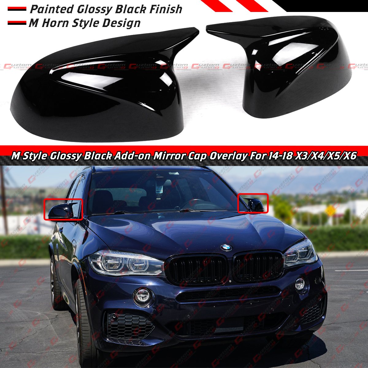 For 14-18 BMW F15 X5 F16 X6 X3 X4 M Style Gloss Black Mirror Cover Caps Overlay