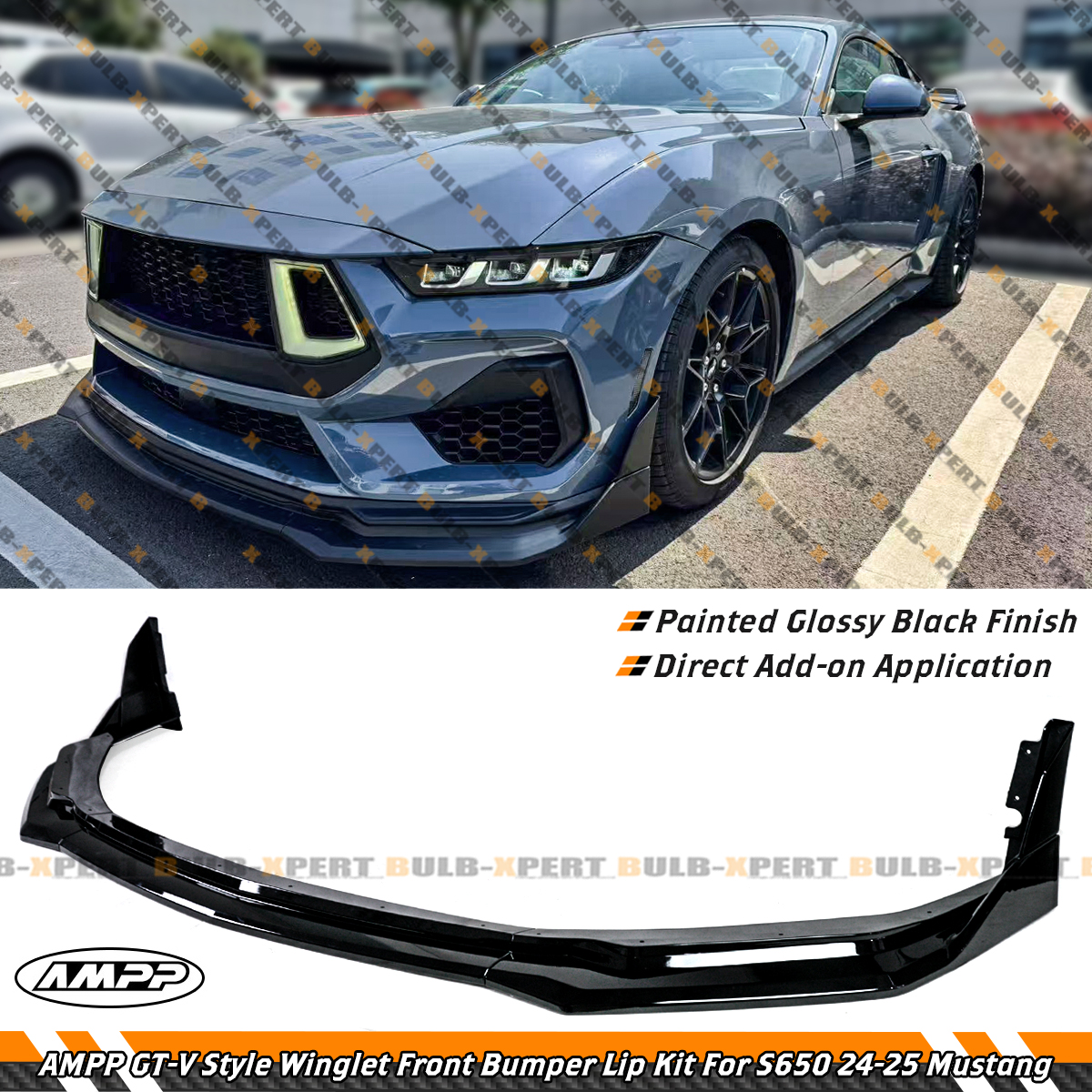 For 24-25 Ford Mustang S650 AMPP GT-V Style Gloss Black Winglet Front Bumper Lip