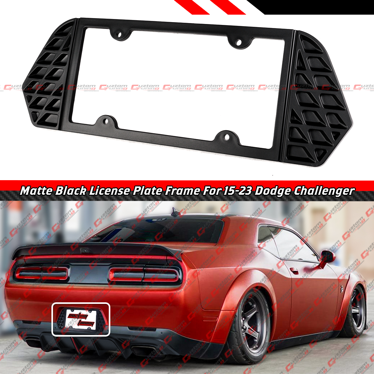 - Unique Rear Bumper License Plate Frame Panel For Challenger. The Special Muscular Pattern Design Provides A More Aggressive Rear Look For Your Challenger. Adds More Detail To the Rear Bumper.