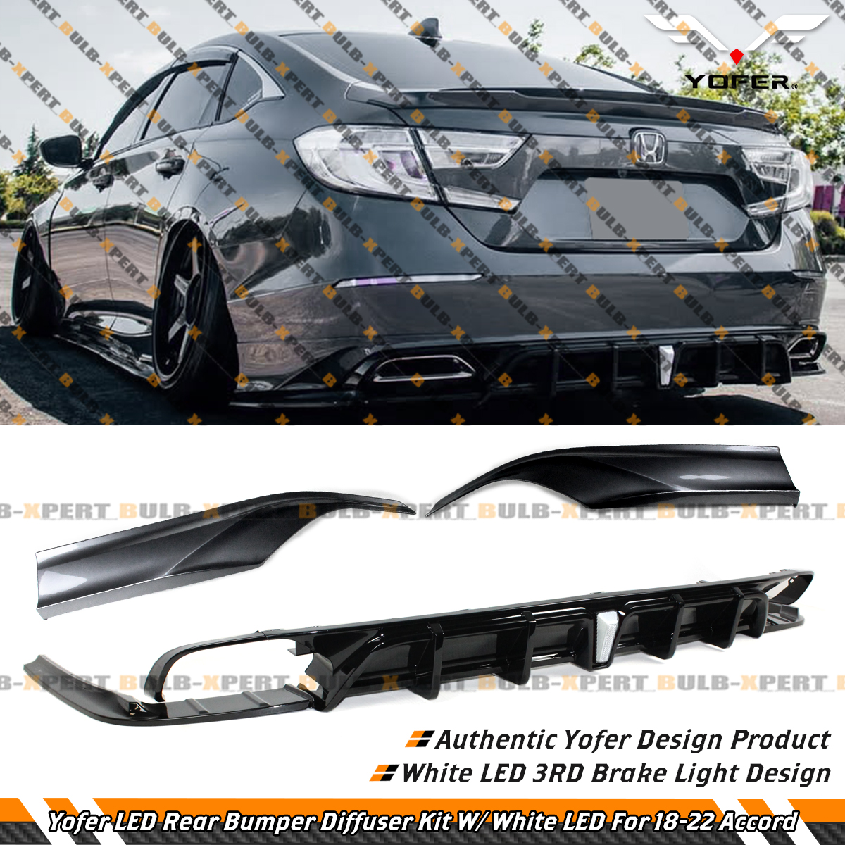 For 18-22 Accord Yofer Modern Steel Rear Bumper Diffuser Kit W/ White LED Light