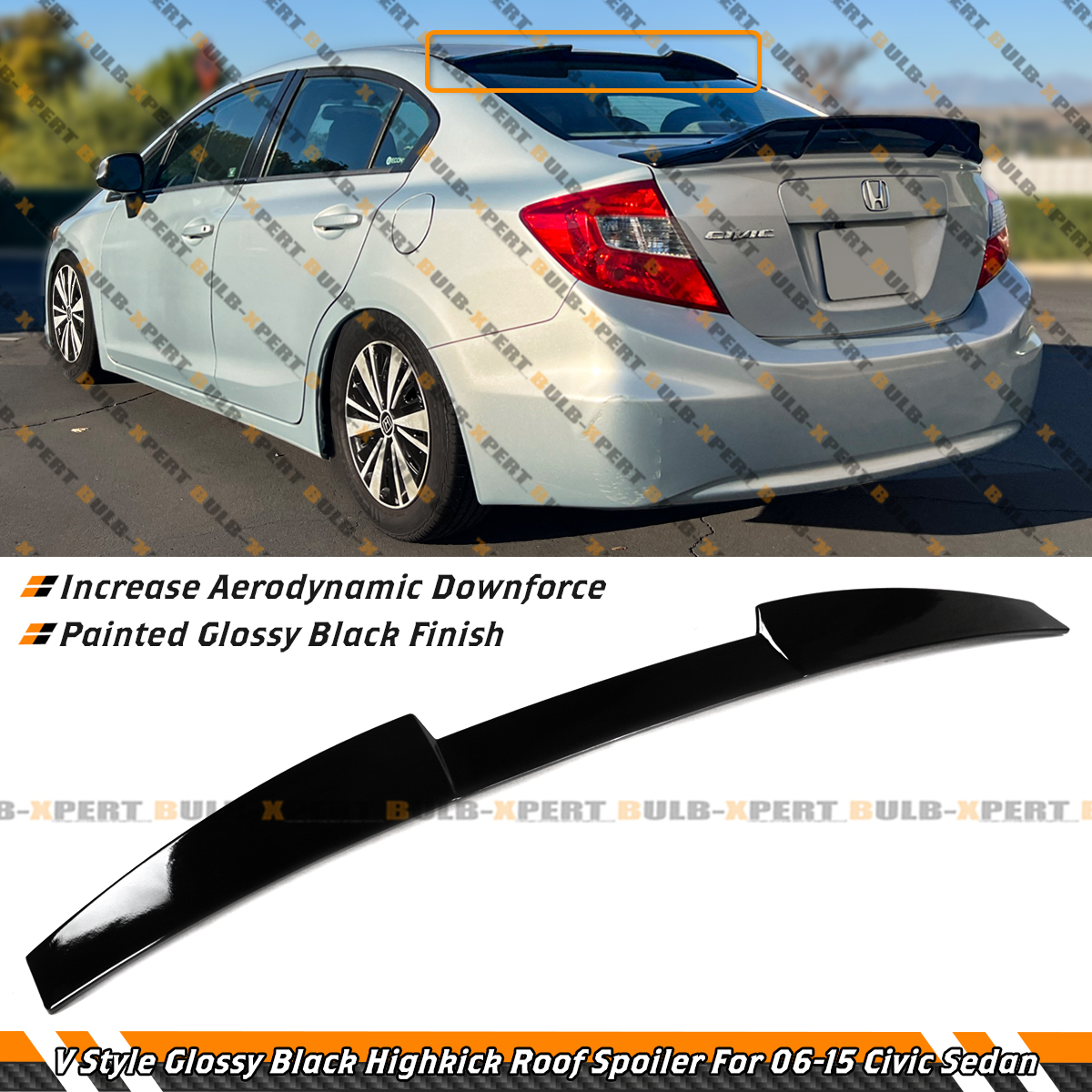 For 2006-2015 Honda Civic Sedan V Style Gloss Black Rear Window Top Roof Spoiler