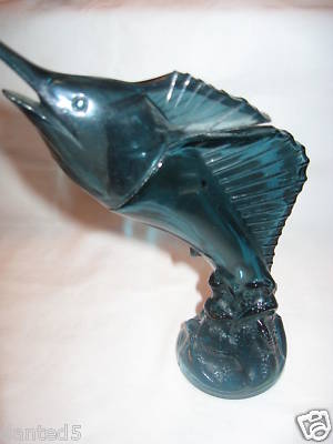 ITEM: VINTAGE AVON BLUE GLASS DOLFIN SHAPE COLLECTIBLE BOTTLE
