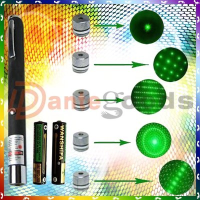 5 in 1 5MW Green Laser Pointer Pen Five Head 5caps + Batteries + Gift BOX