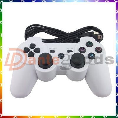 Features: 1.Brand New High Quality Wired Shock Game Controller For Sony PS3. 2. Connect USB (WIRED). 3. NOT have to spend more fortune on other gaming input device. 4. Ideal controller to play games on PS3. 5. Brings back the "rumble" feature for full gameplay immersion. 6. Highly sensitive motion technology senses your every move. 7.Comfortable design with familiar button layout and provide you with realistic feeling. 8. Single mode option with LED display. 9.One Direction key with 8 correctly controlling directions and 8 independent control keys. 10. 2 independent 3D control pads and two control keys. 11. Monstrous vibration and pressure sensitive action buttons. 12. Perfect for racing, sports and action games. 13. Cable length:2M. 14. Color:white.
