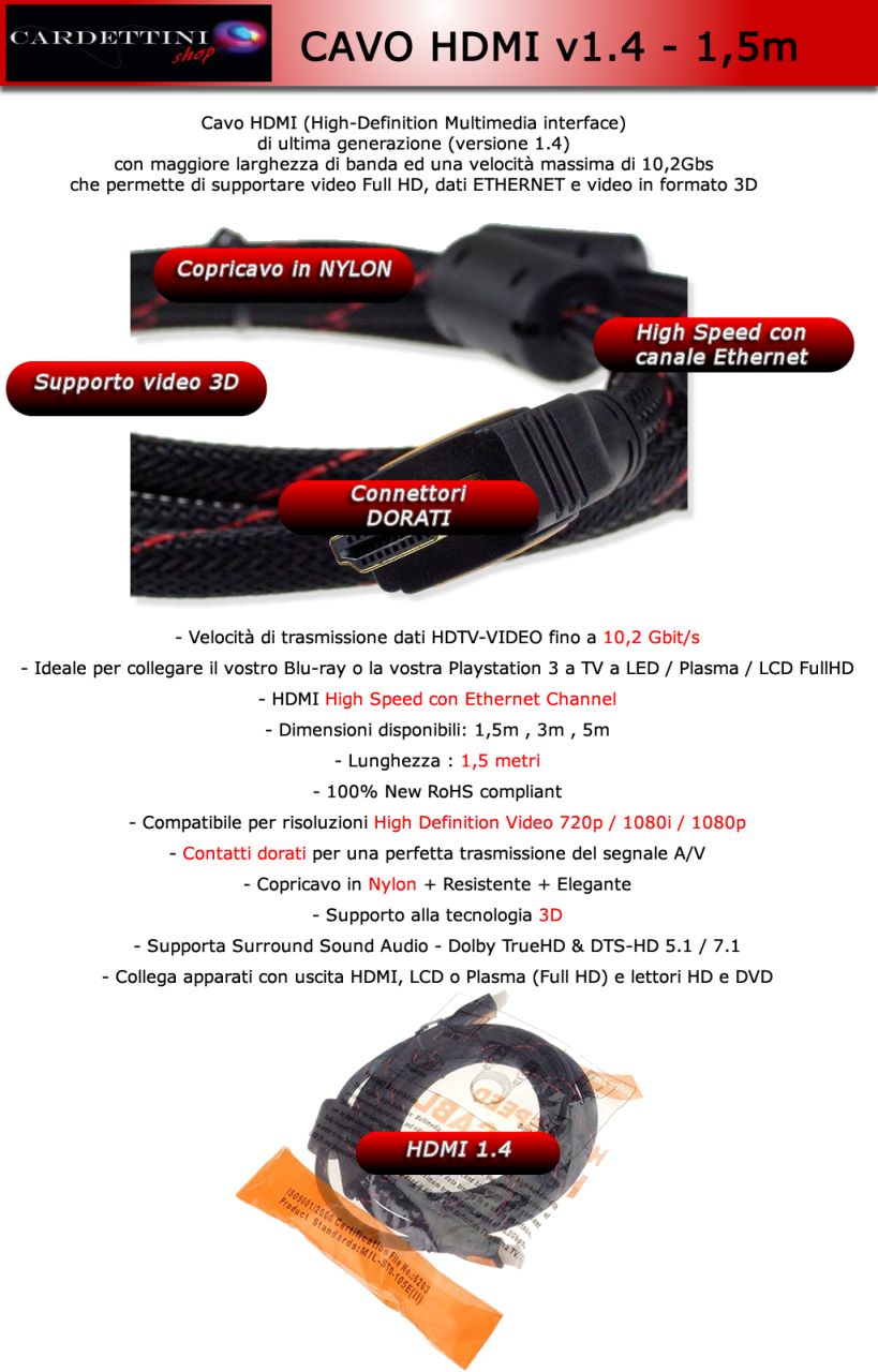 Cavo HDMI 1.4 in Nylon - 3D Ethernet ARC ORO - 1,5metri