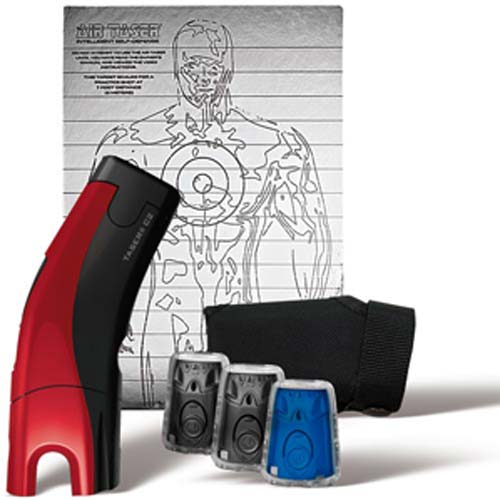 In police studies, the new TASER® C2 has a higher instant incapacitation rate than a 9mm hand gun. The TASER® C2 shoots out 2 darts attached to 15 feet of wire. 50,000 volts travels over the wires and over-rides the central nervous system providing incredible takedown power. SAFETY -- The TASER® C2 can stop a threat up to 15 feet away (4.5 meters), allowing you a safe distance to protect yourself and family from an attacker. If a close quarter defense is warranted, the C2 doubles as a contact stun device to repel someone as a powerful and unexpected backup capability. TASER® technology has proven itself as a safe and effective choice of self-defense with over 500,000 worldwide users. EFFECTIVE -- A TASER® C2 can be conveniently discharged to work anywhere on the body, unlike other conventional weapons with a specified target area. This makes the TASER® C2 more effective self-defense option by making it easier to stop a threat under an already stressful situation. TASER® devices have been used effectively by law enforcement encounters by over 10,000 police agencies in over 4 countries, boasting a 95% effective rating. TASER® technology provides one of the only non-lethal means of stopping an attacker dead in his tracks, even if under the influence of drugs or alcohol. RESPONSIBILITY -- Normal law-abiding citizens carrying a TASER® C2 for self-defense purposes should have no problem acquiring this highly effective tool. However, to further promote responsible ownership, the TASER® C2 will only function after the owner completes a background check through the manufacturer to prevent misuse. As always, purchasers MUST be 18 years old or older.TASER® C2 cartridges also have a unique serial number and are equipped with an Anti-Felon Identification system, which discharges 20-30 serialized paper tags when deployed. Law enforcement can later retrieve this confetti from the scene and contact TASER® International to get the name of the owner of the TASER® device, allowing police to track any potential misuse. LIFETIME REPLACEMENT GUARANTEE If the TASER® C2 is used in self defense, it can be deployed and left behind attached to the attacker causing incapacitation while you get to safety. When fired, the TASER® C2 will deliver a 30 second energy burst. During this window of opportunity, you can set down the TASER® C2 to keep the attacker incapacitated, while you escape. Send us a copy of the police report documenting the incident and we will replace your unit free of charge. All C2 Tasers come with Dimensions of C2 Taser is 5.5" x 2.10"x 1.25" NO Activation Fee Available in Basic (black only), Gold and Platinum Kits (see below) Gold C2 Taser KitsThe TASER® C2 GOLD KIT™ has everything a user needs to carry and practice using the TASER® C2™ device. Utilizing the same technology as their proven law enforcement models, the C2™ has incredible take down power. Package Includes: 1 TASER® C2 - Color of your choice, 2 15' Live Cartridges, 1 Training (blue) Cartridge, 1 Holster (39009), 1 Practice Target