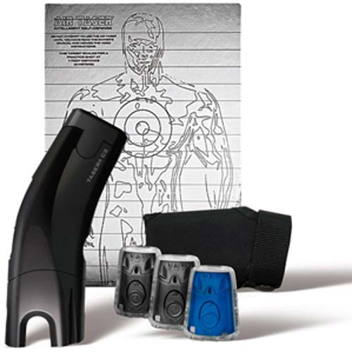 In police studies, the new TASER® C2 has a higher instant incapacitation rate than a 9mm hand gun. The TASER® C2 shoots out 2 darts attached to 15 feet of wire. 50,000 volts travels over the wires and over-rides the central nervous system providing incredible takedown power. SAFETY -- The TASER® C2 can stop a threat up to 15 feet away (4.5 meters), allowing you a safe distance to protect yourself and family from an attacker. If a close quarter defense is warranted, the C2 doubles as a contact stun device to repel someone as a powerful and unexpected backup capability. TASER® technology has proven itself as a safe and effective choice of self-defense with over 500,000 worldwide users. EFFECTIVE -- A TASER® C2 can be conveniently discharged to work anywhere on the body, unlike other conventional weapons with a specified target area. This makes the TASER® C2 more effective self-defense option by making it easier to stop a threat under an already stressful situation. TASER® devices have been used effectively by law enforcement encounters by over 10,000 police agencies in over 4 countries, boasting a 95% effective rating. TASER® technology provides one of the only non-lethal means of stopping an attacker dead in his tracks, even if under the influence of drugs or alcohol. RESPONSIBILITY -- Normal law-abiding citizens carrying a TASER® C2 for self-defense purposes should have no problem acquiring this highly effective tool. However, to further promote responsible ownership, the TASER® C2 will only function after the owner completes a background check through the manufacturer to prevent misuse. As always, purchasers MUST be 18 years old or older.TASER® C2 cartridges also have a unique serial number and are equipped with an Anti-Felon Identification system, which discharges 20-30 serialized paper tags when deployed. Law enforcement can later retrieve this confetti from the scene and contact TASER® International to get the name of the owner of the TASER® device, allowing police to track any potential misuse. LIFETIME REPLACEMENT GUARANTEE If the TASER® C2 is used in self defense, it can be deployed and left behind attached to the attacker causing incapacitation while you get to safety. When fired, the TASER® C2 will deliver a 30 second energy burst. During this window of opportunity, you can set down the TASER® C2 to keep the attacker incapacitated, while you escape. Send us a copy of the police report documenting the incident and we will replace your unit free of charge. All C2 Tasers come with Dimensions of C2 Taser is 5.5" x 2.10"x 1.25" NO Activation Fee Available in Basic (black only), Gold and Platinum Kits (see below) Gold C2 Taser KitsThe TASER® C2 GOLD KIT™ has everything a user needs to carry and practice using the TASER® C2™ device. Utilizing the same technology as their proven law enforcement models, the C2™ has incredible take down power. Package Includes: 1 TASER® C2 - Color of your choice, 2 15' Live Cartridges, 1 Training (blue) Cartridge, 1 Holster (39009), 1 Practice Target