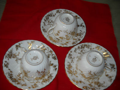 This auction is for ONE standard sized cup and saucer set by Minton (12 sets available for purchase- pick yur quantity photos do not do justice to these items!!) Beautiful gold pattern Pattern: Ancestral photos do not do these items justice. There is camera glare. Note: These items are "MINT" No chips, cracks or repairs MINT CONDITION