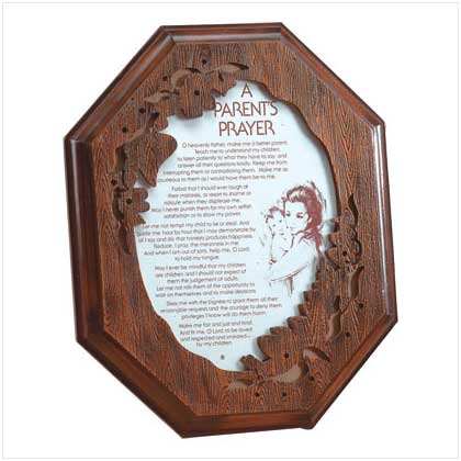 This touching, two-sided cherry wood plaque has "A Child's Prayer" on one side and "A Parent's Prayer" on the other. 8 1/2" x 10 7/8" high.
