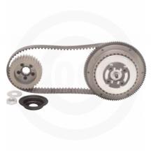 - Include Pro Clutch assembly, starter ring gear, mating pinion gear (if required), one-piece sealed bearing for the inner primary (to replace stock two-piece bearing) and 1 3/4" dense-pack Kevlar polychain belt