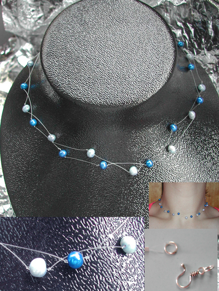 2 strand light & electric blue fresh water pearl floating necklace - 2115