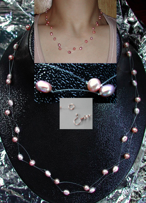 2 strand pinks fresh water pearls floating necklace - 2124