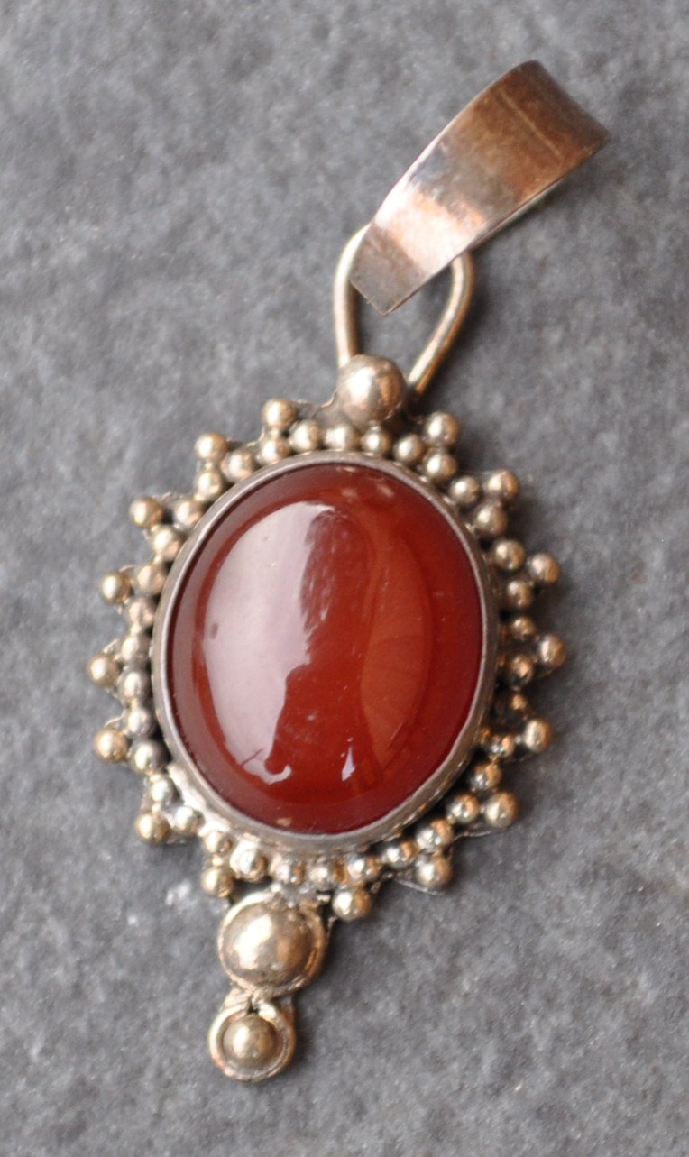 35MM Carnelian Pendant Sterling Silver charm - 1121