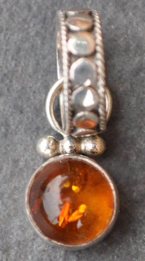 Sterling Silver Amber Pendant 25mm charm - 1114