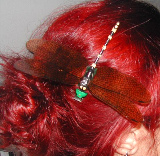 black & yellow dragonfly hair clip orange wings 605