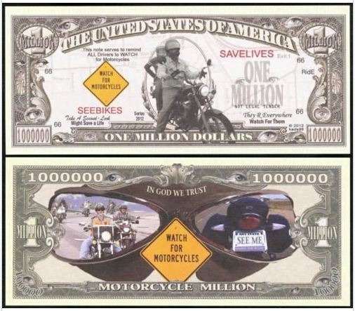 Motorcycle Million Dollar Bill comes in protective sleeve