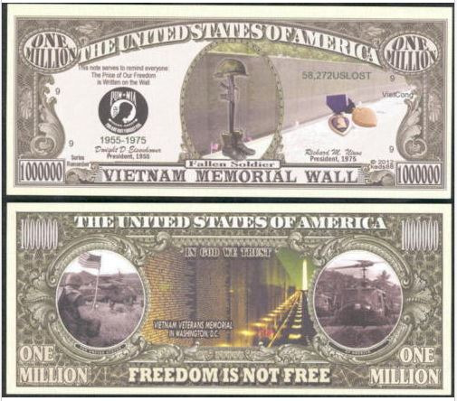 Vietnam Memorial Wall Dollar Bill in protective sleeve