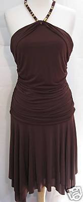 BCBG MAX AZRIA Brown Cross Halter Dress L NWT $208
