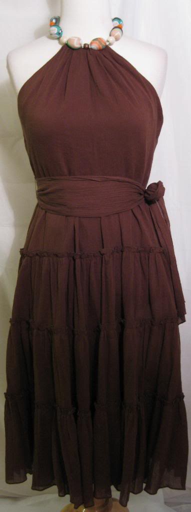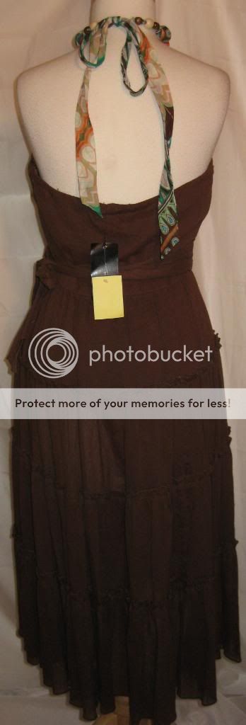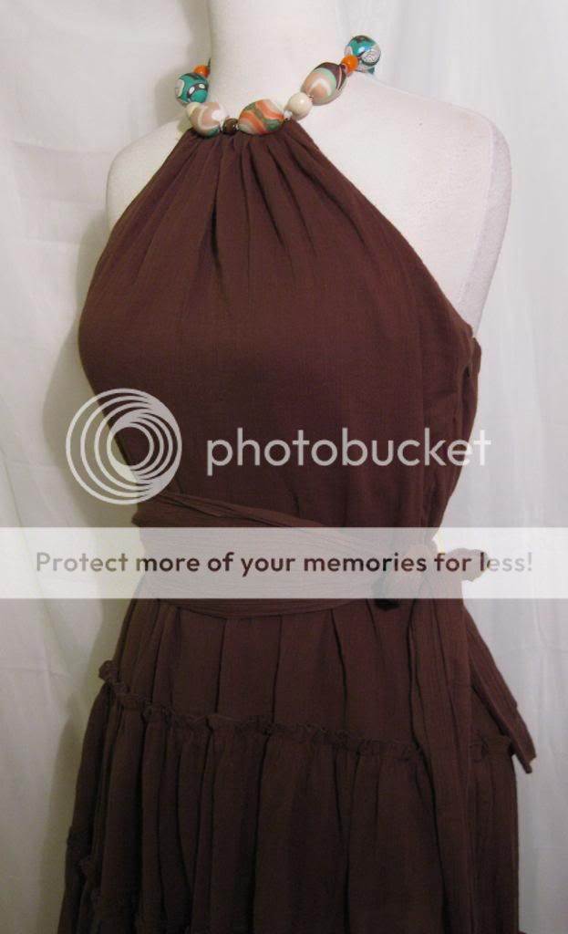 This is a very beautiful dress by BCBG Max Azria. The halter ties behind the neck and features hard and soft beads. Mid-back gives subtle sexiness to this comfortable and hip dress. Great for the beach or for a fun day out. A must have for your summer and spring wardrobe! Enjoy!