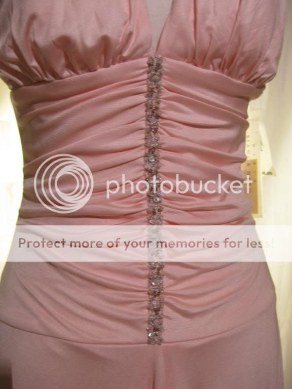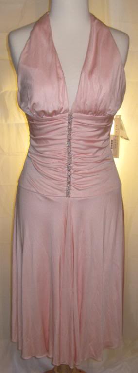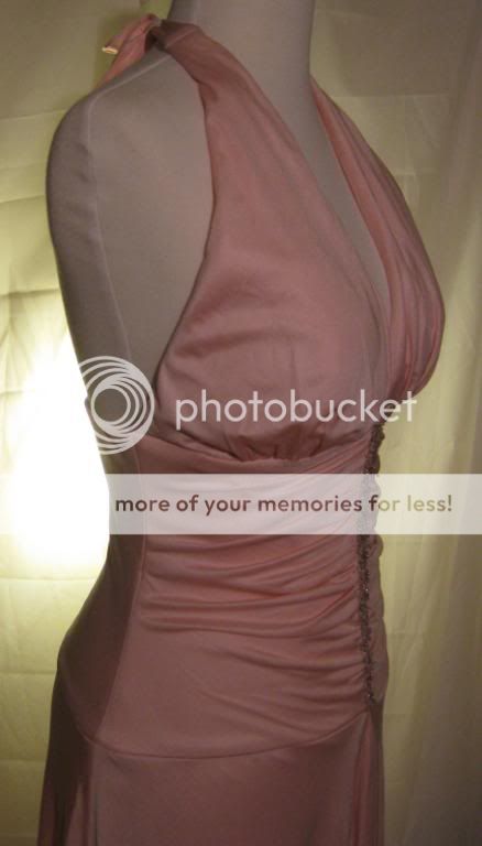 This is a beautiful and romantic dress by Maria Bianca Nero. It is a halter dress that ties at the back of the neck. In the center of the back of the dress is a hidden zipper and hook closure. Beaded embroidery at front center. This is a very low-cut dress! Sexy and flirty!