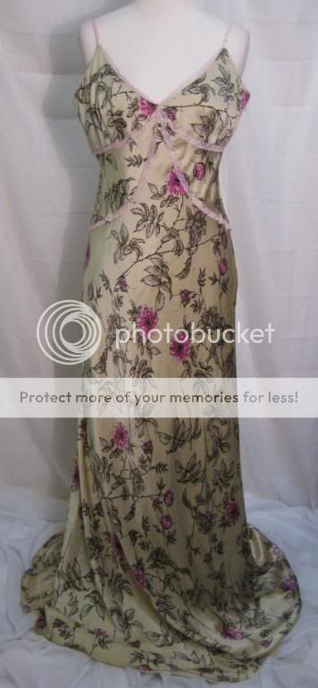 This is a beautiful and sexy Nicole Miller dress. Features pink adjustable straps and lace lining at the top of the dress. Very romantic Hidden side zipper and hook and eye closure. sweetheart neckline. Very long and elegant dress. (Keep in mind my mannequin is about 5'6" in height). Very beautiful and perfect for any special occasion. Enjoy!