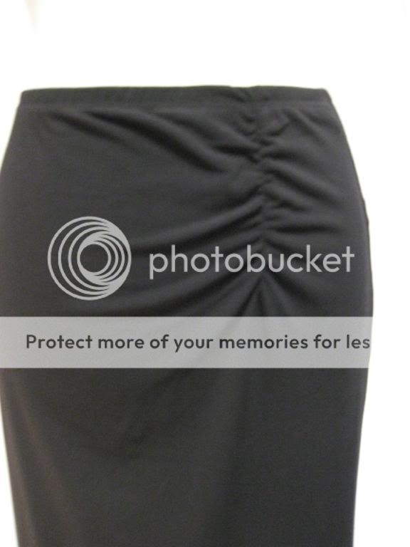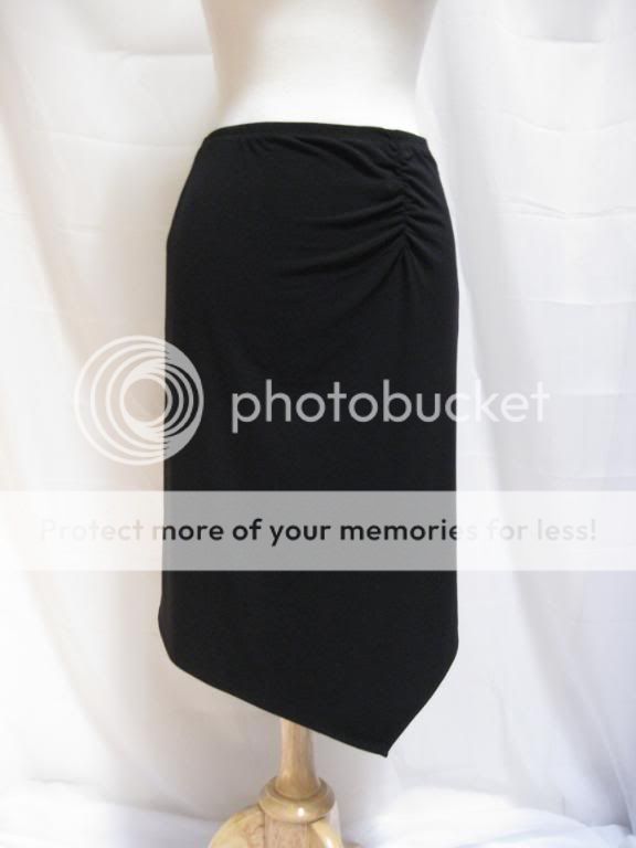 This is a very sexy skirt by Ideology. It has a slightly ruched style on the front of the skirt. It is asymmetrical style, with elastic waistline to conform to fit your body. Longest length hits midcalf, and the shortest hits below the knees. A must have for your wardrobe. Enjoy!