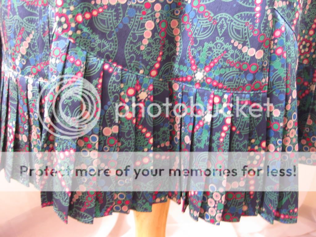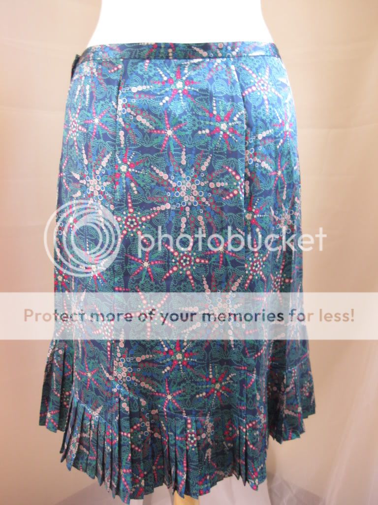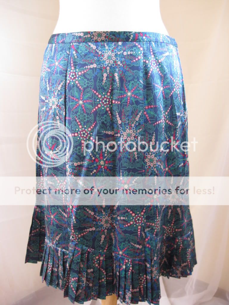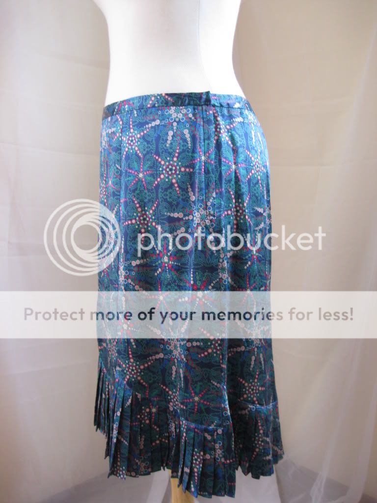 This is a beautiful silk skirt by Marc Jacobs. It has multiple color patterns, making this one unique skirt. It is pleated at the bottom of the skirt. Side hook and eye closure with zipper. Very lightweight, comfortable, and gorgeous! A must have for your wardrobe! Bid now on this all new low price!