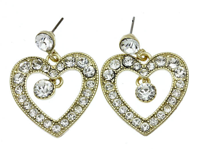 Gold Crystal Heart Earrings Dangle Stud
