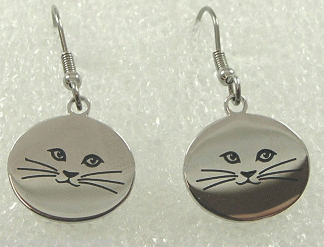 NEW! Adorable stainless steel Cat with whiskers earrings