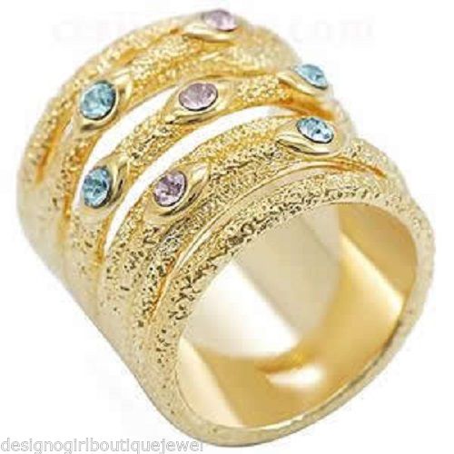 Geometric Austrian Crystal Hammered Gold Plate Wrap Stack Cocktail Ring Size 10