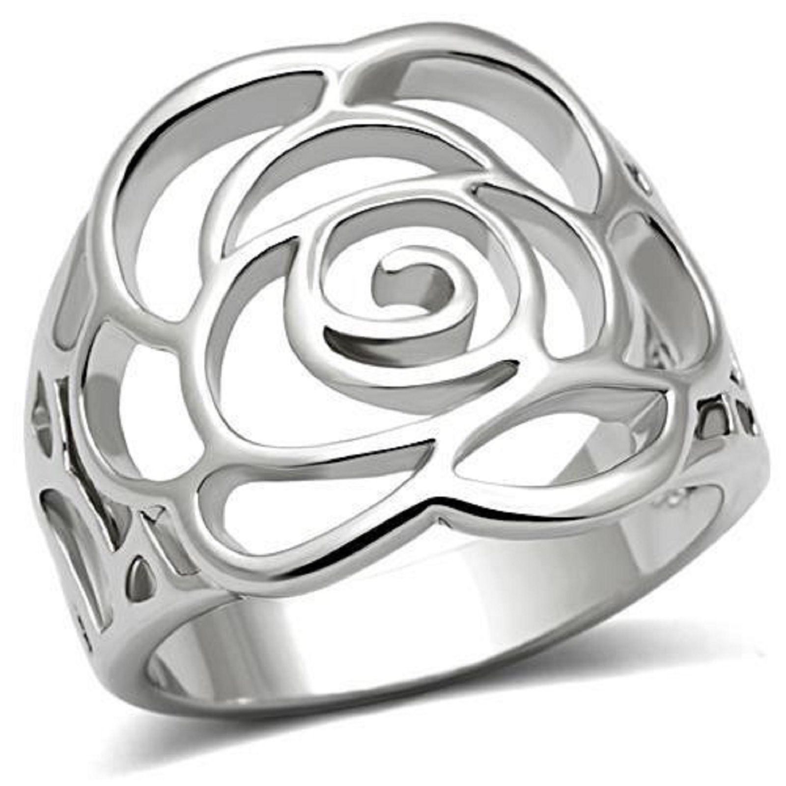 Abstract Flower Rhodium Openwork Floral Ring Size 5 6 7 8 9 10 Cutout Design