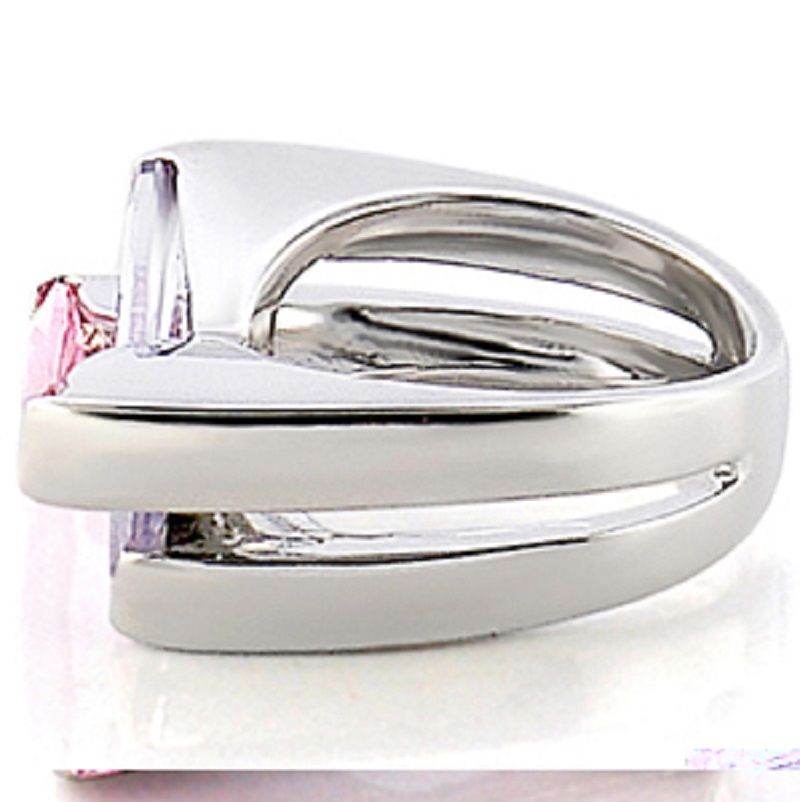 Amethyst Lavender CZ Rhodium Silver Modern Geometric Cocktail Band Ring SZ 6