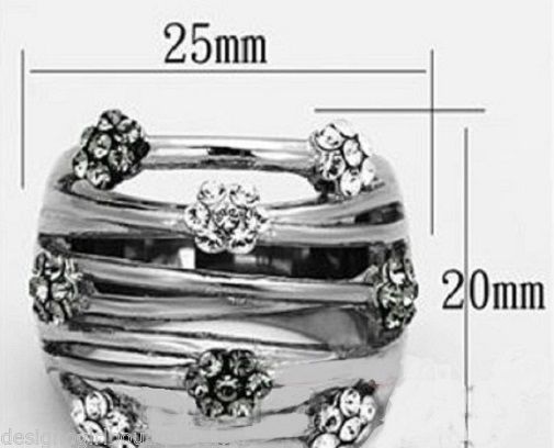 Art Deco Flower Cluster Stainless Steel Geometric Ring 5 6 7 8 9 10 Silver