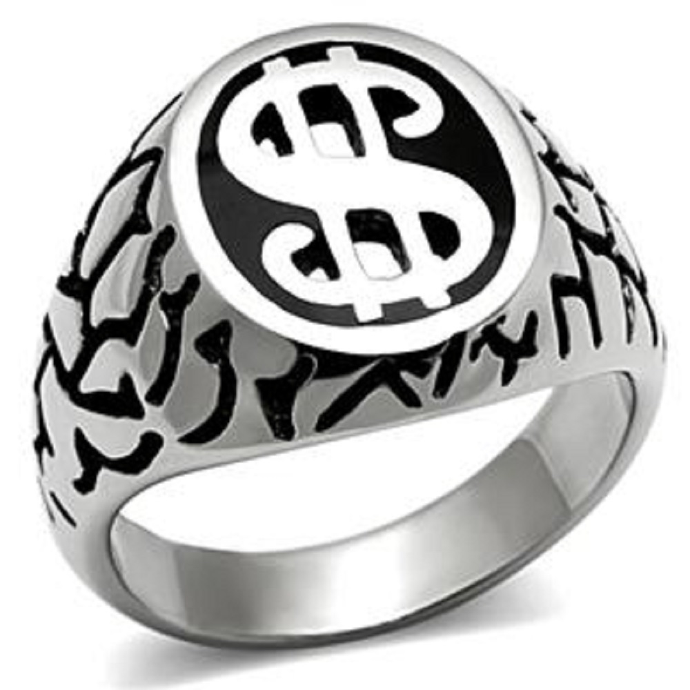 Stainless Steel $ Dollar Sign Money Celtic Silver Black Ring SZ 8 9 10 11 12 13