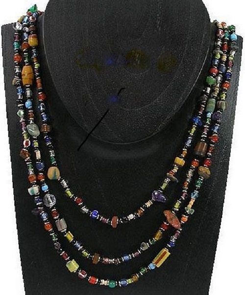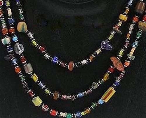 Handmade Ethnic 3 Strand Bead Multicolor African 22" Necklace Exotic
