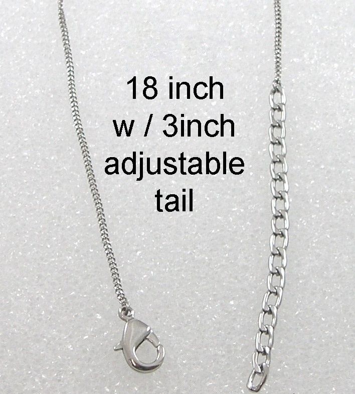 INCLUDED:18"+ 3"=21" (extension tail) Stainless Steel chain included w/lobster clasp